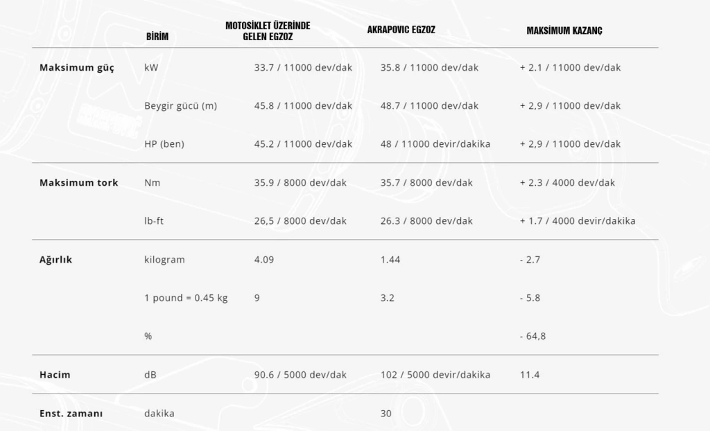Bu egzoz, el yapımı karbon fiber dış kılıf ve uç kapağı ile inşa edilmiş kısa bir susturucuya sahip çekici bir yarış görünümü ile tasarlanmıştır. Standart stok egzozuna göre %64,9 (2,6 kg) ağırlık tasarrufu sağlar. Mühendislerin geliştirme sırasındaki amacı, estetik, ses ve ağırlık azaltımına odaklanırken mümkün olan en iyi gaz tepkisini elde etmekti. Slip-On Line (Carbon), derin bir yarış tonu sunar ve yeniden eşleme gerektirmeyen tak ve çalıştır kurulumuna sahiptir.Ayrıca, yolcu ayak dayanaklarının kullanımını ortadan kaldıran opsiyonel alüminyum susturucu braketi de mevcuttur.Model: CF MOTO 450SR (24-25)450NK (24-25) Ürün No : S-CF4SO1-APCGüç Bilgileri:[power]Güç: +2.1 kW - 11000 rpm[torque]Tork: +2.3 Nm - 4000 rpm[weight]Ağırlık:-2.7 kg[play_button]Akrapovic Egzoz sesini dinlemek için tıklayınız [play_button]Motosiklet üzerinde gelen Egzoz sesini dinlemek için tıklayınız Kutu içeriği pdf dosyasını indirmek için tıklayınız. Kurulum talimatları pdf dosyasını indirmek için tıklayınız.