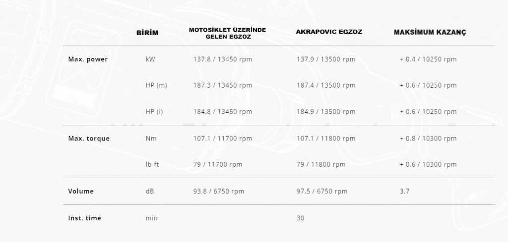 Hafif, yüksek dereceli titanyumdan üretilmiştir. Ağırlık tasarrufuyla birlikte güç ve torkta artış sunar. Kısa konik bir susturucuyla tasarlanan Slip-On Line (Titanyum) benzersiz, keskin bir yarış sesi üretir. Egzoz ayarlama sürecini bir sonraki adıma taşımak için tasarlanmış isteğe bağlı bir başlık seti ve isteğe bağlı bir bağlantı borusu da mevcuttur. Başlık seti veya bağlantı borusuyla birlikte kullanıldığında ECU'nun yeniden eşlenmesi gerekir.Model: KAWASAKI NINJA ZX-10R (21-25)ZX10RR (21-25)Ürün No : S-K10SO28-ASZTBLGüç Bilgileri:[power]Güç: +0.4 kW - 10250 rpm[torque]Tork: +0.8 Nm - 10300 rpm[play_button]Akrapovic Egzoz sesini dinlemek için tıklayınız [play_button]Motosiklet üzerinde gelen Egzoz sesini dinlemek için tıklayınız Kutu içeriği pdf dosyasını indirmek için tıklayınız. Kurulum talimatları pdf dosyasını indirmek için tıklayınız.
