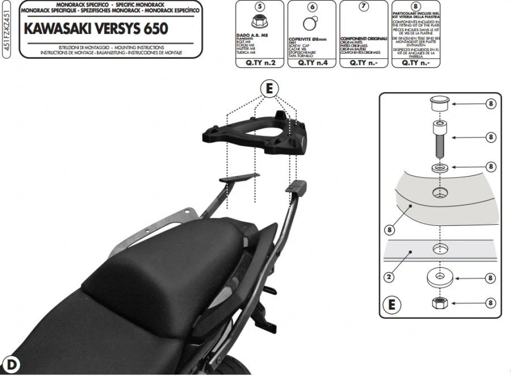ARKA ÇANTA TAŞIYICIModel: KAWASAKI VERSYS 650 (10-14)Ürün No : 451FZBağlantı Şekli : M5M , M6M (Monolock) veya M5, M7, M8A, M8B, M9A, M9B (Monokey) tabla gereklidir. Ürün pdf dosyasını indirmek için tıklayınız