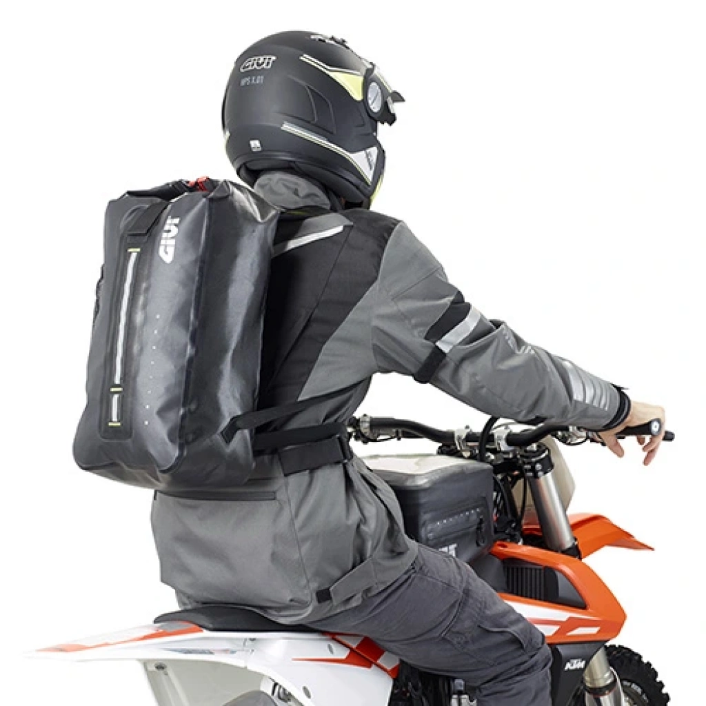 GIVI GRT701 SIRT ÇANTASI[kumas]MALZEME• Ergonomik omuz askıları ve havalandırmalı yastıkları ile su geçirmez kompakt tasarım [havalandirma]ÖZELLİK• 25 litre kapasite• "Roll top" kapanma sistemi ile ana bölmede tam su geçirmezlik • Reflektif çizgiler• Arka sırtlık ve omuz askıları sarı renkli EVA pad ve ağ kaplıdır• Güvenlik kemerli• Boyutlar: 44cm x 23cm x 22cm