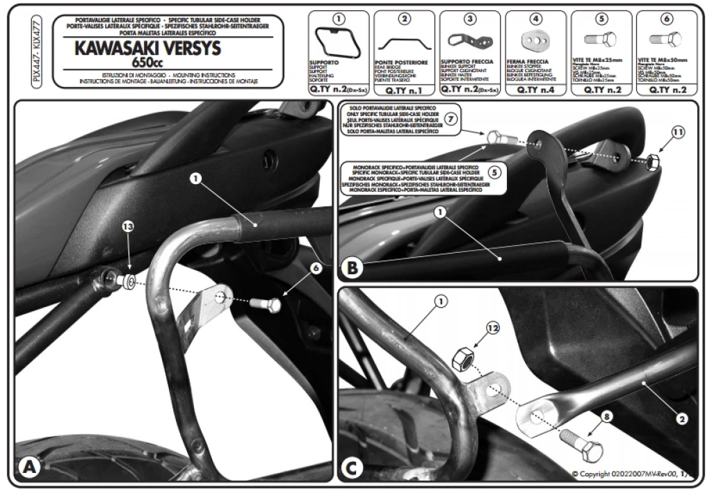 YAN ÇANTA TAŞIYICI Model: KAWASAKI VERSYS 650 (2006-2009)Ürün No : PLX447Bağlantı Şekli : DirektSADECE GIVI V35 VE V37 ÇANTA İLE UYUMLUDUR.Not : Arka çanta taşıyıcınız yoksa PLX447KIT kullanılarak monte edilebilir. Arka çantanız varsa direk monte edilebilir. Ürün pdf dosyasını indirmek için tıklayınız