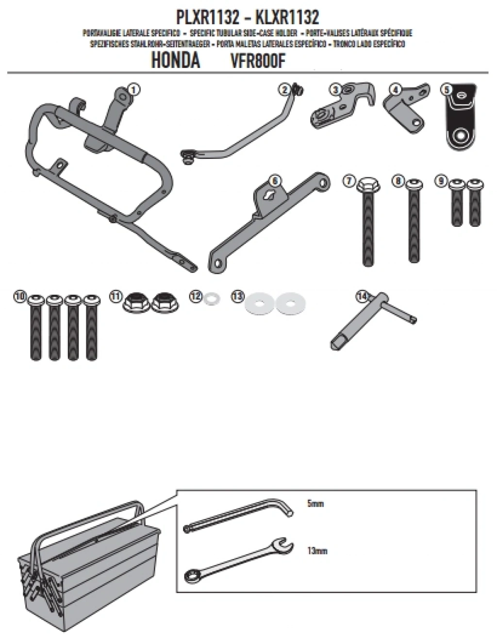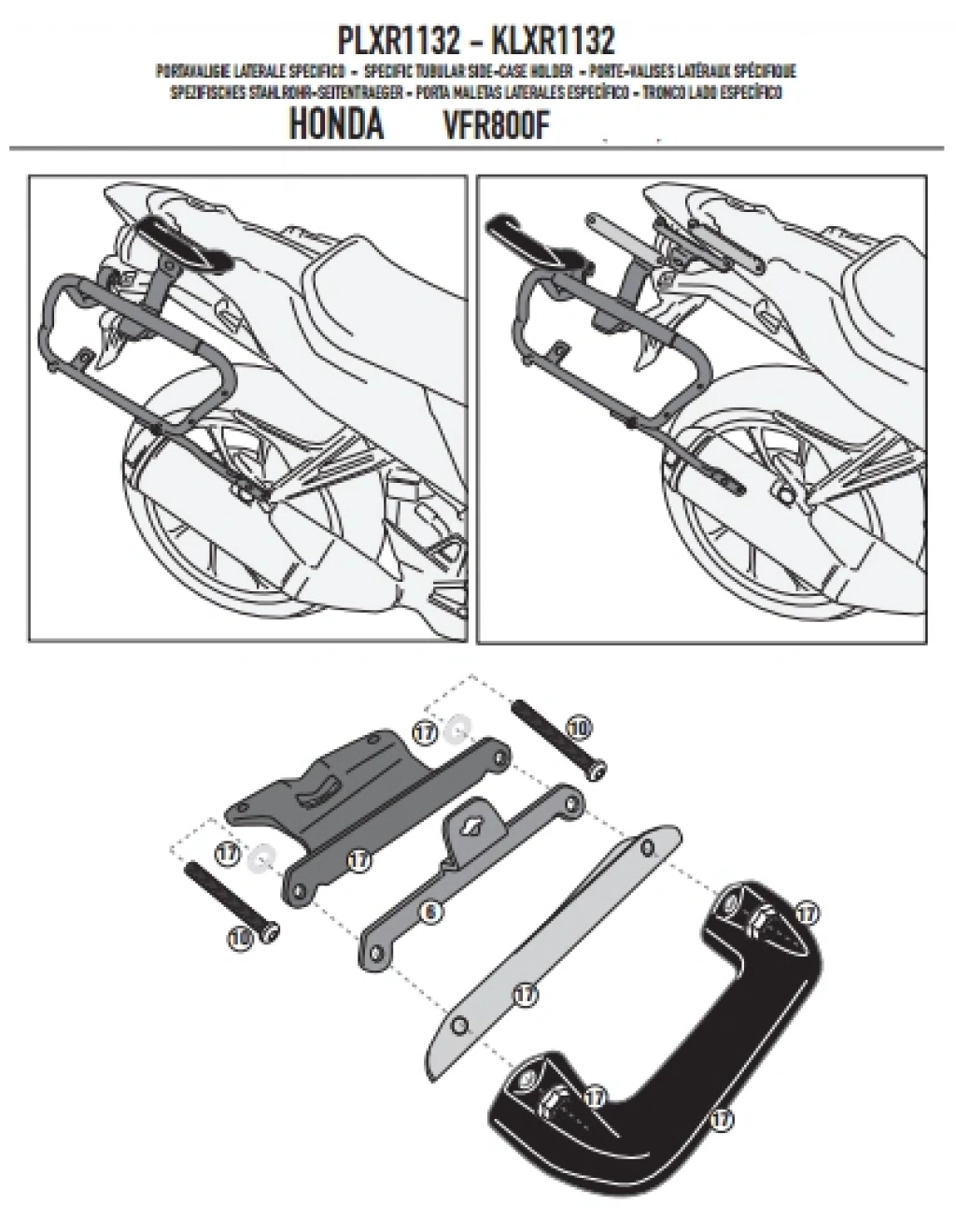YAN ÇANTA TAŞIYICI Model: HONDA VFR 800 F (2014-2020)Ürün No : PLXR1132Bağlantı Şekli : DirektSADECE GIVI V35 VE V37 ÇANTA İLE UYUMLUDUR.Not : Arka çanta taşıyıcınız yoksa 1132KIT kullanılarak monte edilebilir. Arka çantanız varsa direk monte edilebilir. Ürün pdf dosyasını indirmek için tıklayınız