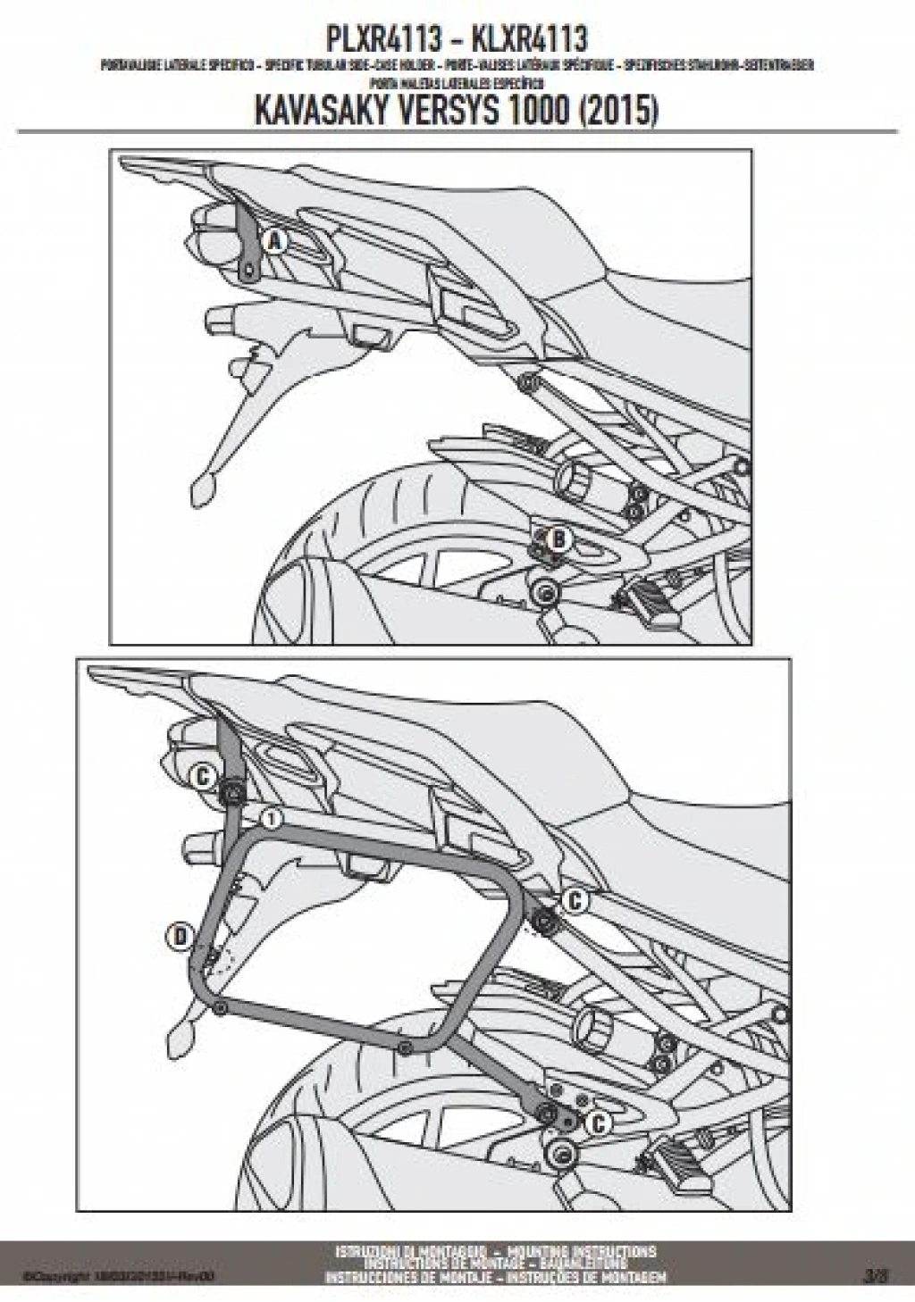 YAN ÇANTA TAŞIYICI Model: KAWASAKI VERSYS 1000 (15-16)Ürün No : PLXR4113Bağlantı Şekli : DirektSADECE GIVI V35 VE V37 ÇANTA İLE UYUMLUDUR. Ürün pdf dosyasını indirmek için tıklayınız