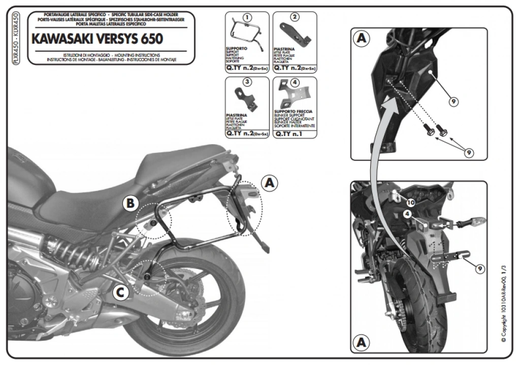 YAN ÇANTA TAŞIYICI Model: KAWASAKI VERSYS 650 (2010-2014)Ürün No : PLXR450Bağlantı Şekli : DirektSADECE GIVI V35 VE V37 ÇANTA İLE UYUMLUDUR.Not : Arka çanta taşıyıcınız yoksa 450KIT kullanılarak monte edilebilir. Arka çantanız varsa direk monte edilebilir. Ürün pdf dosyasını indirmek için tıklayınız