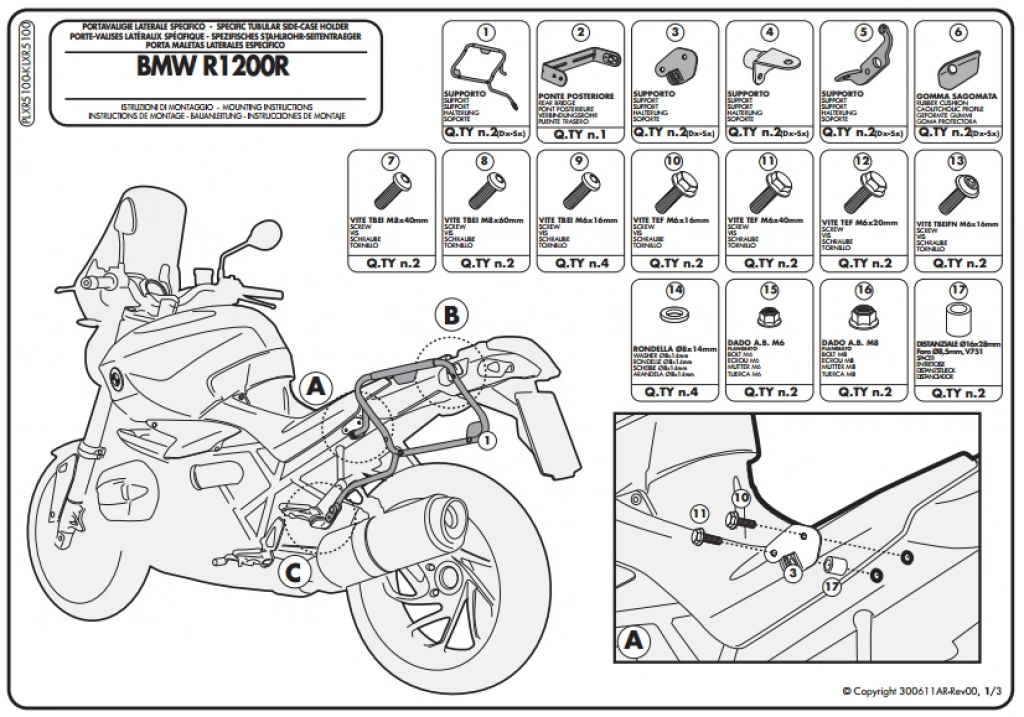 YAN ÇANTA TAŞIYICI Model: BMW R1200R (2011-2014)Ürün No : PLXR5100Bağlantı Şekli : DirektSADECE GIVI V35 VE V37 ÇANTA İLE UYUMLUDUR. Ürün pdf dosyasını indirmek için tıklayınız