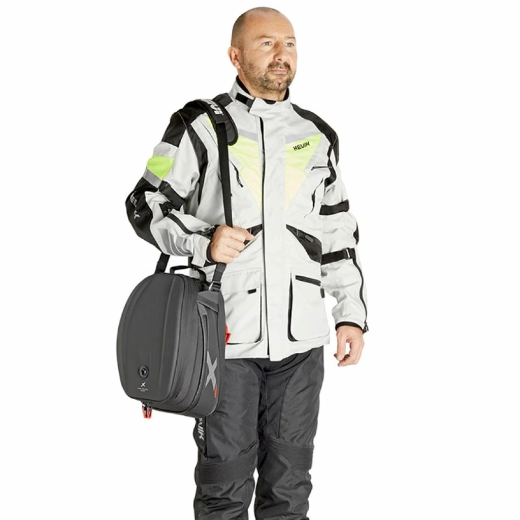 GIVI XL06B DEPO ÜSTÜ ÇANTA[kumas]MALZEME• Yüksek mukavemetli 1200D W/R polyester kumaş• Termoform üst kabuk ve alt kabuk• Yüksek UV dirençli dış malzeme (ISO 4892 – 2)[havalandirma]ÖZELLİK• 15-20 litre genişleyebilen kapasite• Çıkarılabilir, suya dayanıklı, IPX5 sertifikalı iç çanta (şiddetli yağmura ve zorlu koşullara dayanıklı)• Hızlı ve manyetik takma/çıkarma özellikli (Fidlock®), suya dayanıklı, IPX5 su yalıtımlı (şiddetli yağmurlara ve zorlu koşullara dayanıklı) harita tutucu• Çantanın alt kısmında su/nem tahliyesi için delikler• GIVI Power Hub şarj sistemiyle uyumlu kablo çıkışı için bağlantı noktası• Omuzda taşımak için omuz askısı• Elde kolayca taşımak için kulp• Daha fazla görünürlük için yansıtıcı kısımlarÖzel BF_ _ aparatı ile takılabilir