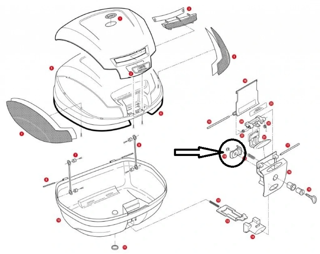 GIVI ÇANTA İÇ KİLİT TUTUCU Ürün No : Z640RGIVI (V35-V46-TRK33-E470-E450-E370-E340-E260-E350) çantalar ile uyumludur.