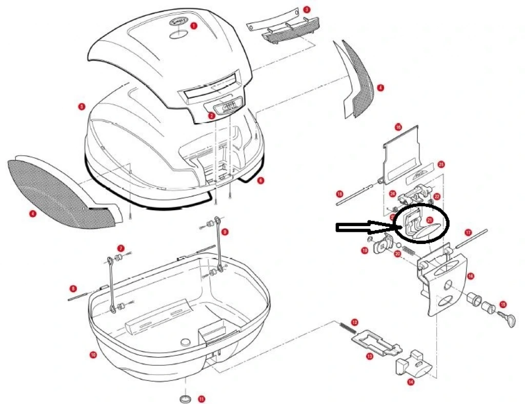 GIVI ÇANTA AÇMA DÜĞMESİ Ürün no : Z644NRGIVI (TRK33-TRK46-V46-E370) Çantalar ile uyumludur.