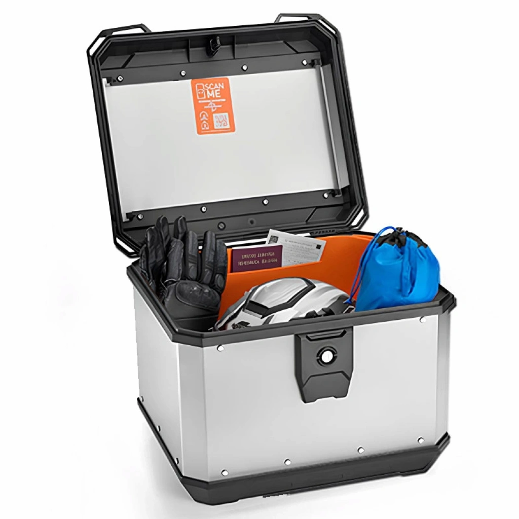 KAPPA KMX500A ALUMINYUM ÇANTA (MONOLOCK)K’METROBOX KMX500, Monolock serisinin yeni 50 litrelik üst çantası olup, motosiklet üzerinde özgürlüğü seven ve pratik, güvenli seyahat etmek isteyen kullanıcılar için tasarlanmıştır. CRABLOCK basınçlı kilit sistemi ile donatılan çanta, anahtar çevrildiğinde kapağın hafifçe kalkmasını sağlar ve hızlı, zahmetsiz erişim sunar. İçten kumandalı hızlı çıkarma mekanizması, çantanın yalnızca kapak açıkken plakadan ayrılmasına izin vererek yanlışlıkla sökülmeyi önler. Son derece hafif yapısına rağmen, sağlamlığından ödün vermez ve günlük kullanım ile uzun yol sürüşleri için güvenilir bir çözüm sunar.[kumas]MALZEME• 1,2 mm malzeme kalınlığına sahip doğal alüminyumdan üretilmiştir• Çizilmeye dayanıklı yüzey[havalandirma]ÖZELLİK• 50 Litre kapasite• İç kısım, geri dönüştürülmüş R-PET malzemeden üretilen turuncu renkli özel bir astarla kaplıdır. Bu yumuşak doku, kaskınızın ve eşyalarınızın çizilmesini önlerken, sürüş esnasında ses yapmalarını engeller. Ayrıca turuncu renk, eşyalarınızı kolayca fark etmenizi sağlar• Kappa'nın geliştirdiği patentli Crablock sistemi ile donatılmıştır. Çantayı tabladan ayıran kilit mekanizması çantanın içindedir. Bu sayede çanta kilitliyken dışarıdan müdahale ile sökülmesi imkansızdır, hırsızlığa karşı üstün koruma sağlar• Çift kask alabilir• Kutu içerisinden tabla çıkmaktadır• Genişlik = 43 cm• Yükseklik = 35 cm• Derinlik = 36 cm