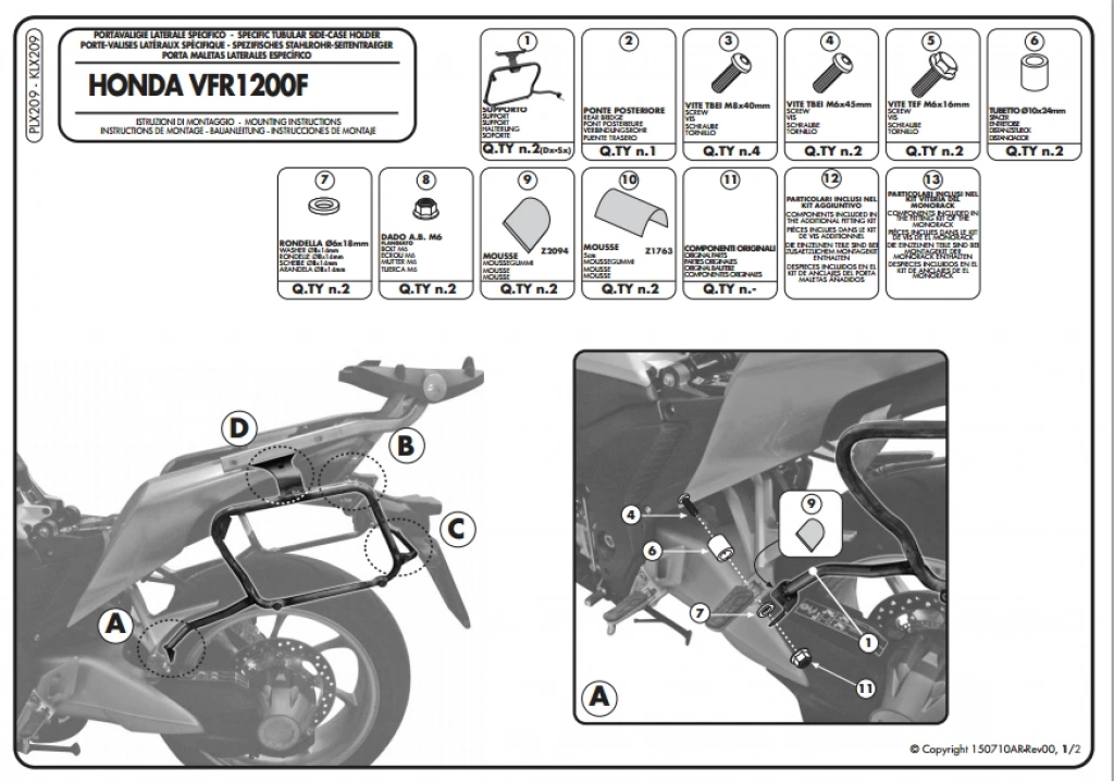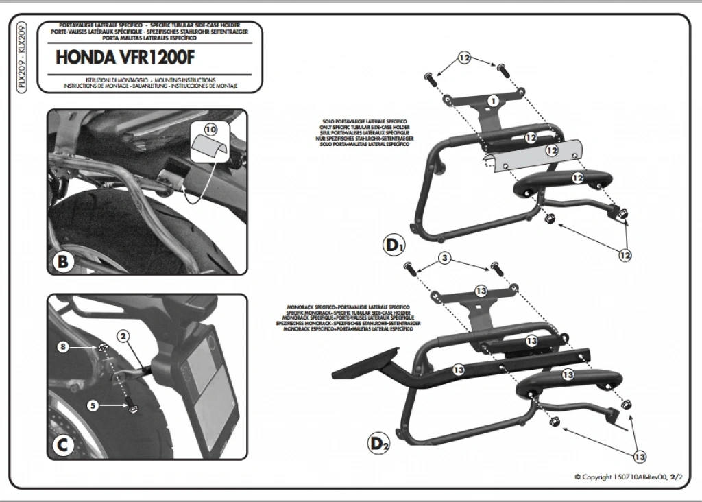 YAN ÇANTA TAŞIYICI Model: HONDA VFR 1200 F (2010-2016)Ürün No : KLX209SADECE KAPPA K33 ÇANTAYA UYUMLUDURKZ267 arka çanta taşıyıcınız yoksa 267KIT kullanılarak monte edilebilir. Arka çantanız varsa direk monte edilebilir.