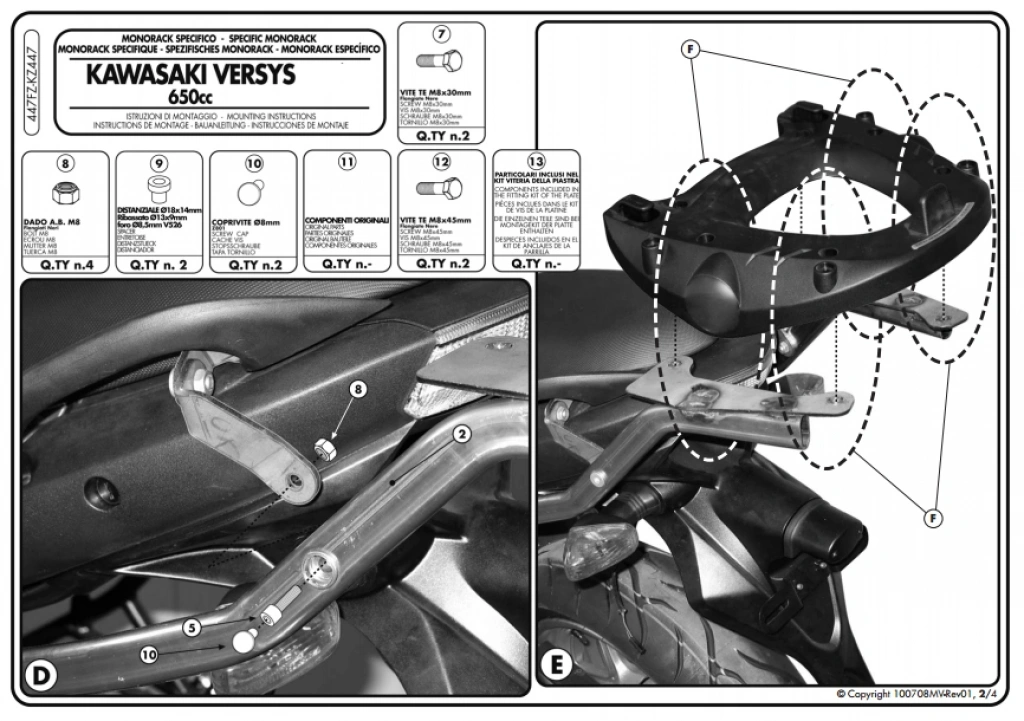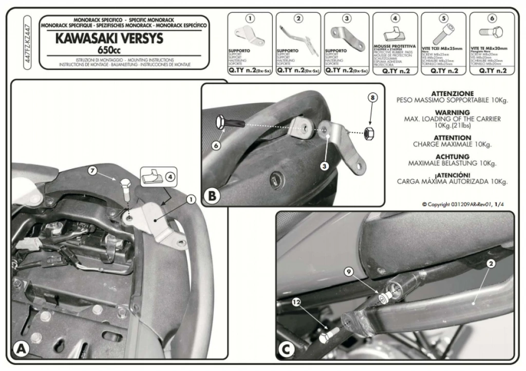 ARKA ÇANTA TAŞIYICIModel: KAWASAKİ VERSYS 650 (2006-2009)Ürün No : KZ447Bağlantı Şekli : KM5M(Monolock) veya KM5(Monokey) tabla gereklidir.
