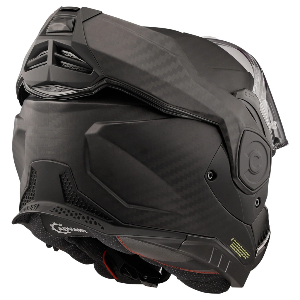 [genel] GENEL• Karbon dış kabuk yapısı (darbeyi absorbe eden ve daha güvenli bir sürüş sağlayan hafif, aynı zamanda dirençli ve güçlü karbon katmanlar kullanılmaktadır) • 2 farklı kabuk boyutu (XS-L / XL-3XL bedenlere göre )• 180 derece açılabilen çene açılır modüler kask• Benzersiz mekanizmaya ve en hafif yapıya sahiptir [havalandirma] HAVALANDIRMA• Geliştirilmiş havalandırma kanalları • Çene havalandırması• Ön ve arka havalandırma kanalları [vizor] VİZÖR• Polikarbonat UV filtreli ön vizör• Çizilmeye karşı dayanıklı dahili güneş vizörü [konfor]KONFOR• Ekstra konforlu komple çıkarılabilir ve yıkanabilir iç astar • X-Static© gümüş astar• Çene altı rüzgar perdesi• Kolay kullanım için mikrometrik alüminyum çene kayışı• Ağırlık 1550 ± 50 [sertifika]SERTİFİKA• ECE 22.06 sertifikası• DOT Sertifikası[kutu_icerigi]KUTU İÇERİĞİ• Taşıma kılıfı• Taşıma sırt çantası• Pinlock buhar camı• Ek olarak siyah cam kutu içerisinden çıkmaktadır.