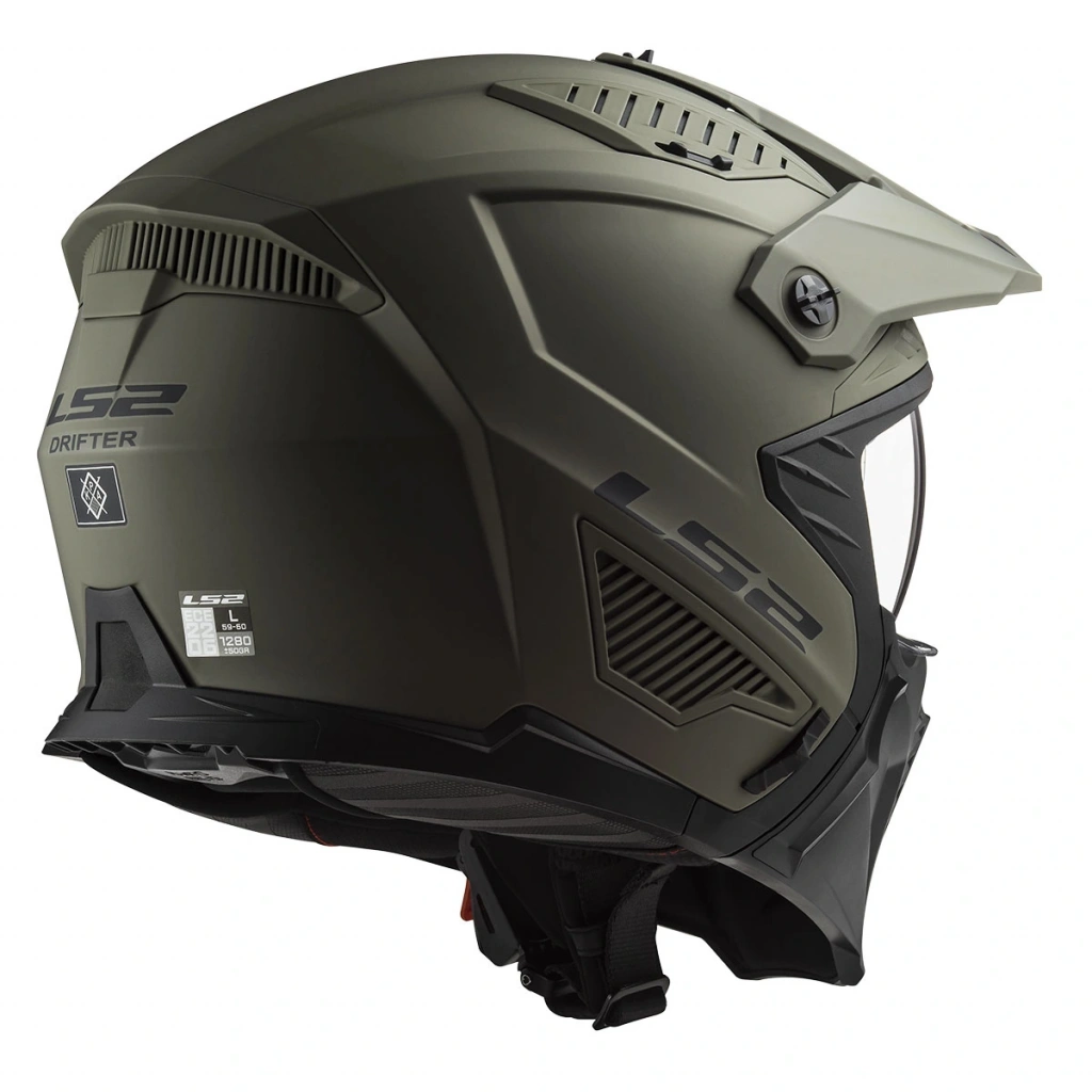LS2 DRIFTER agresif tasarıma sahip bir trial kask. Cruiser motosikletler, trial sürüşler ya da şehir içinde günlük kullanım için harika bir seçimdir. Çene koruması çıkarılabilir olduğu gibi, siperliği de ayarlanabilir ve tamamen sökülebilir. Hafifliği ve yüksek güvenliğiyle öne çıkan KPA (Kinetik polimer alaşımlı) malzemeden üretilmiştir. [genel] GENEL• Yüksek performanslı dış kabuk malzemesi KPA (Kinetik polimer alaşımlı) teknolojisi• 2 farklı kabuk boyutu (XS-S / M-2XL bedenlere göre ) [havalandirma] HAVALANDIRMA• Geliştirilmiş havalandırma kanalları • Çene havalandırması• Ön ve arka havalandırma kanalları [vizor] VİZÖR• Polikarbonat UV filtreli ön vizör[konfor]KONFOR• Komple çıkarılabilir ve yıkanabilir iç astar • Çıkarılabilir çene koruyucusu• Çıkarılabilir siperlik• Kolay kullanım için mikrometrik çene kayışı• LS2 4X JBL interkom takılabilmesi için hazır yuva• Çok yoğunluklu EPS• Lazer kesim köpük• Ağırlık 1300gr ± 50[sertifika]SERTİFİKA• ECE 22.06 sertifikası[kutu_icerigi]KUTU İÇERİĞİ• Taşıma kılıfı• Siperlik için kapaklar• Ek olarak Siyah vizör kutu içerisinden çıkmaktadır.