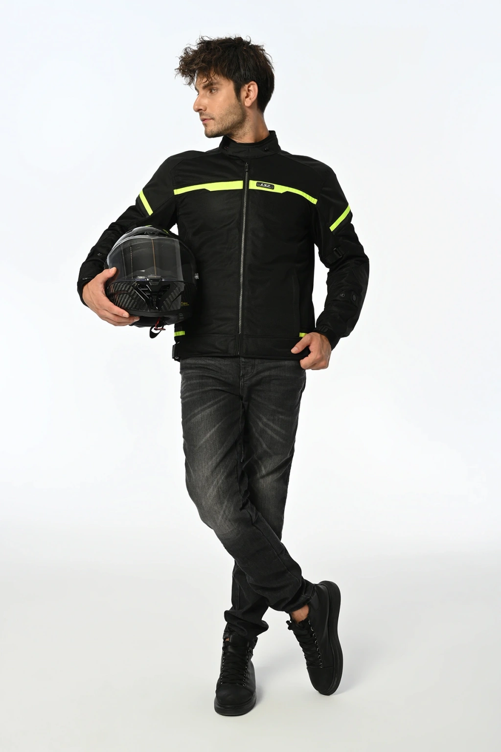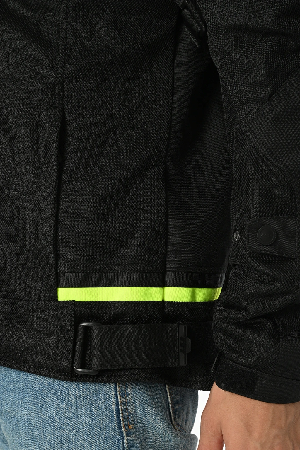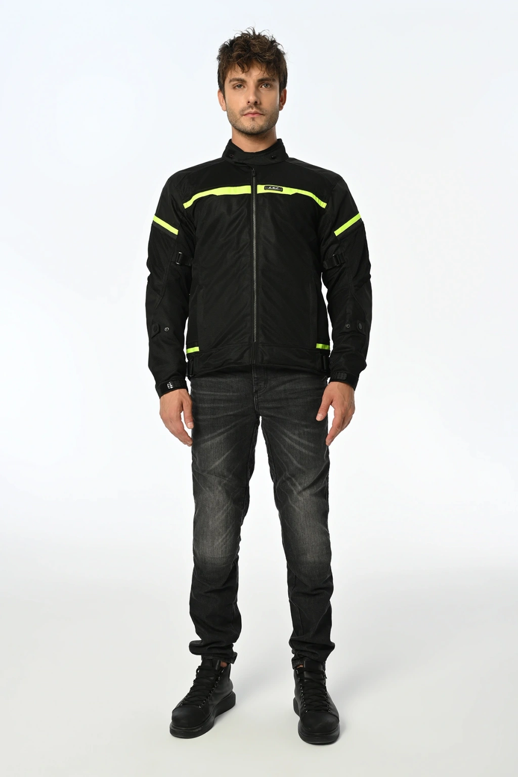 [kumas]MALZEME• A seviye CE sertifikalıdır(EN17092-4:2020)• 600D 92T CE onaylı polyester kumaş• 3 katlı file kumaş (polyester)• 4 mevsim kullanılabilir yapı[koruma]KORUMA• CE onaylı EN1621-1: 2012 Seviye 1 sertifikalı omuz ve dirsek korumaları• Dirsek korumalarda 2 kademeli ayar• Soft Sırt koruması (çıkarılabilir)[ergonomi]ERGONOMİ• Bel bölgesinde kişisel ayar kayışı• Kol ve manşet bölgesinde ayar kayışı• Boyun koruma kısmı• Ayarlanabilir yakada velcro kapatma• Uzun pantolon bağlantı fermuarı• Görünürlüğü arttırıcı reflektif şeritler[isi_dengesi]ISI VE ASTAR• Çıkarılabilir su geçirmez astar• Nefes alabilen yapı[ozellikler]ÖZELLİK• Aşınma ve yırtılma direnci• 2 adet fermuarlı dış cep• 1 adet iç cep• Kulaklık cebi• 1 adet su geçirmez cep telefonu cebi.