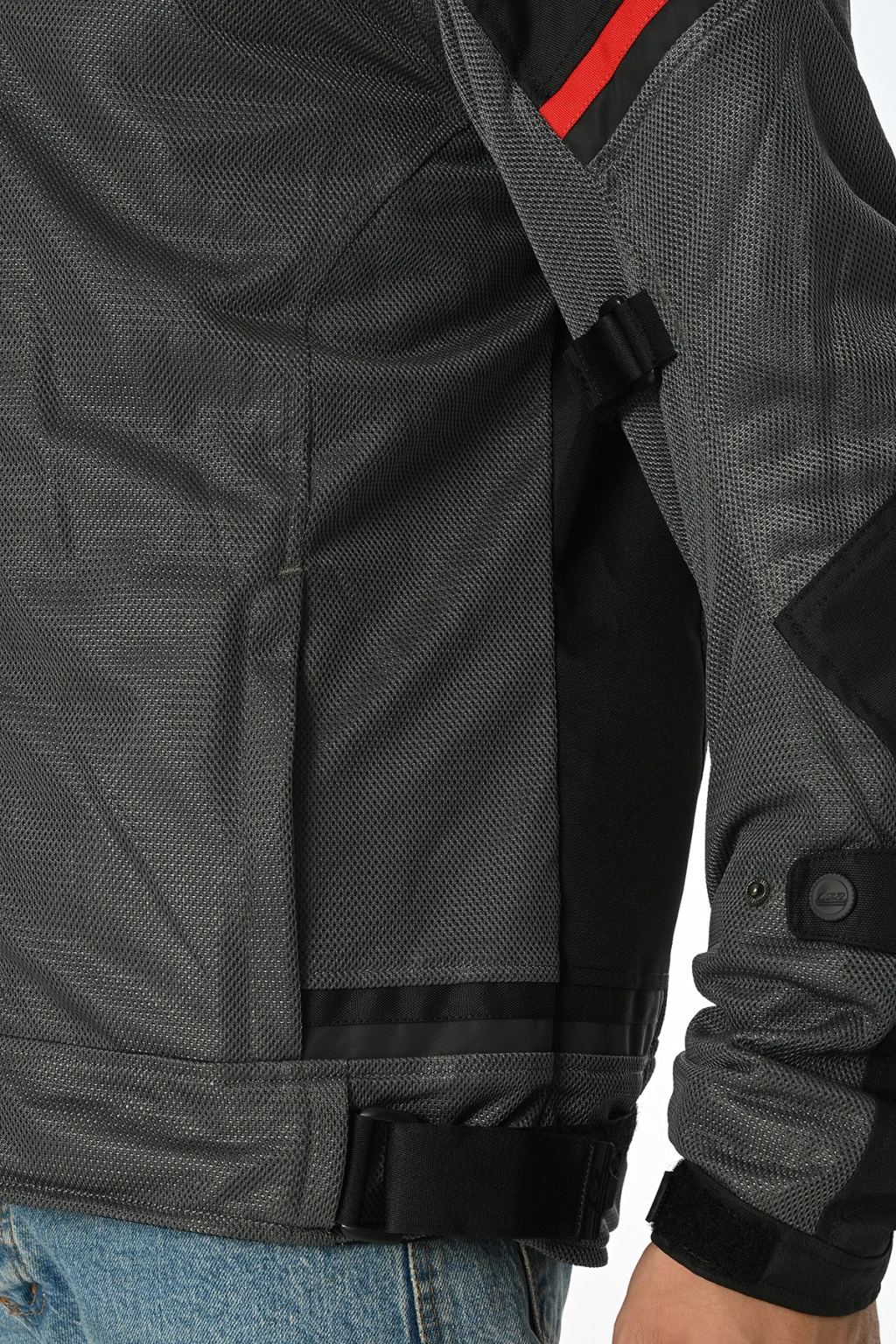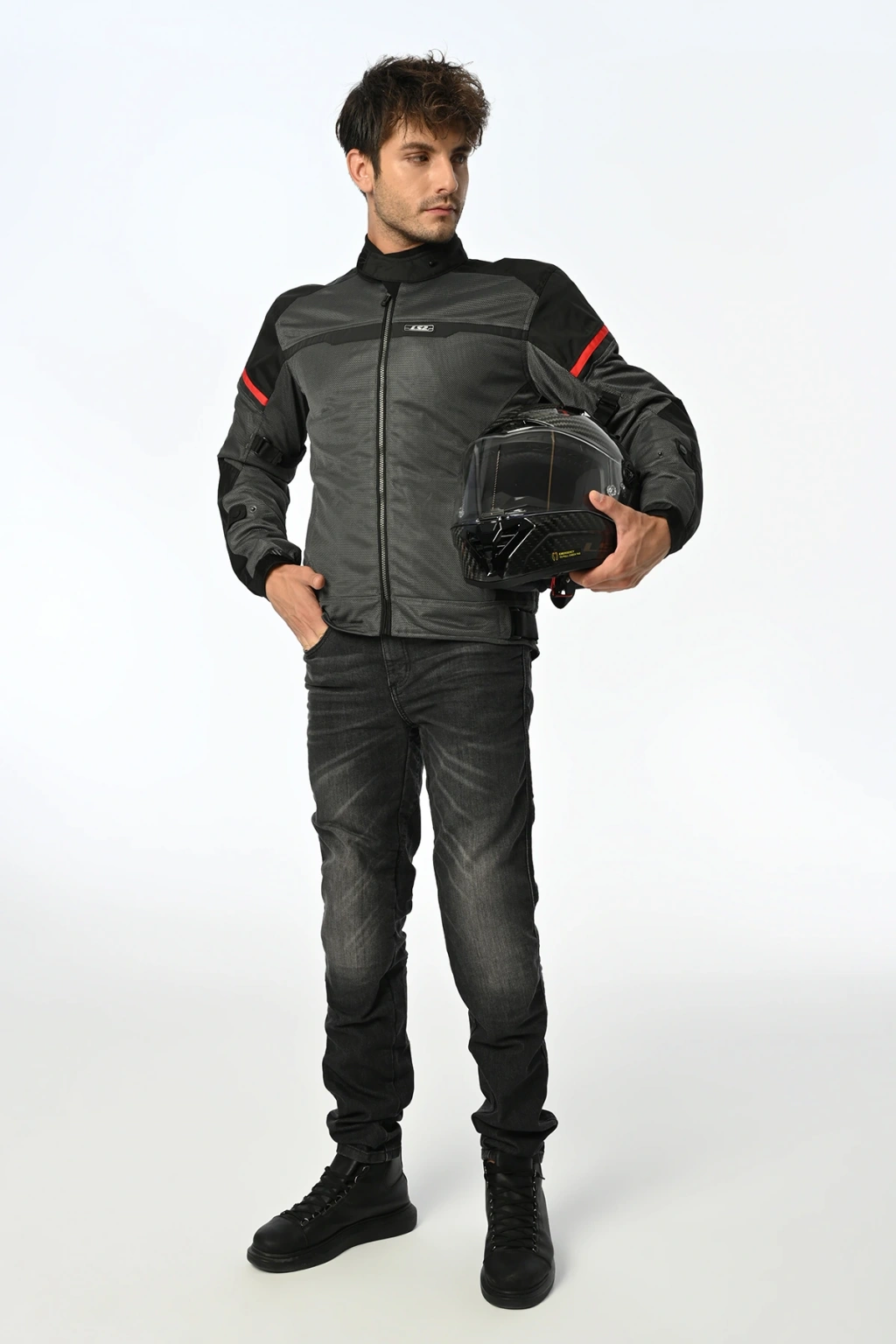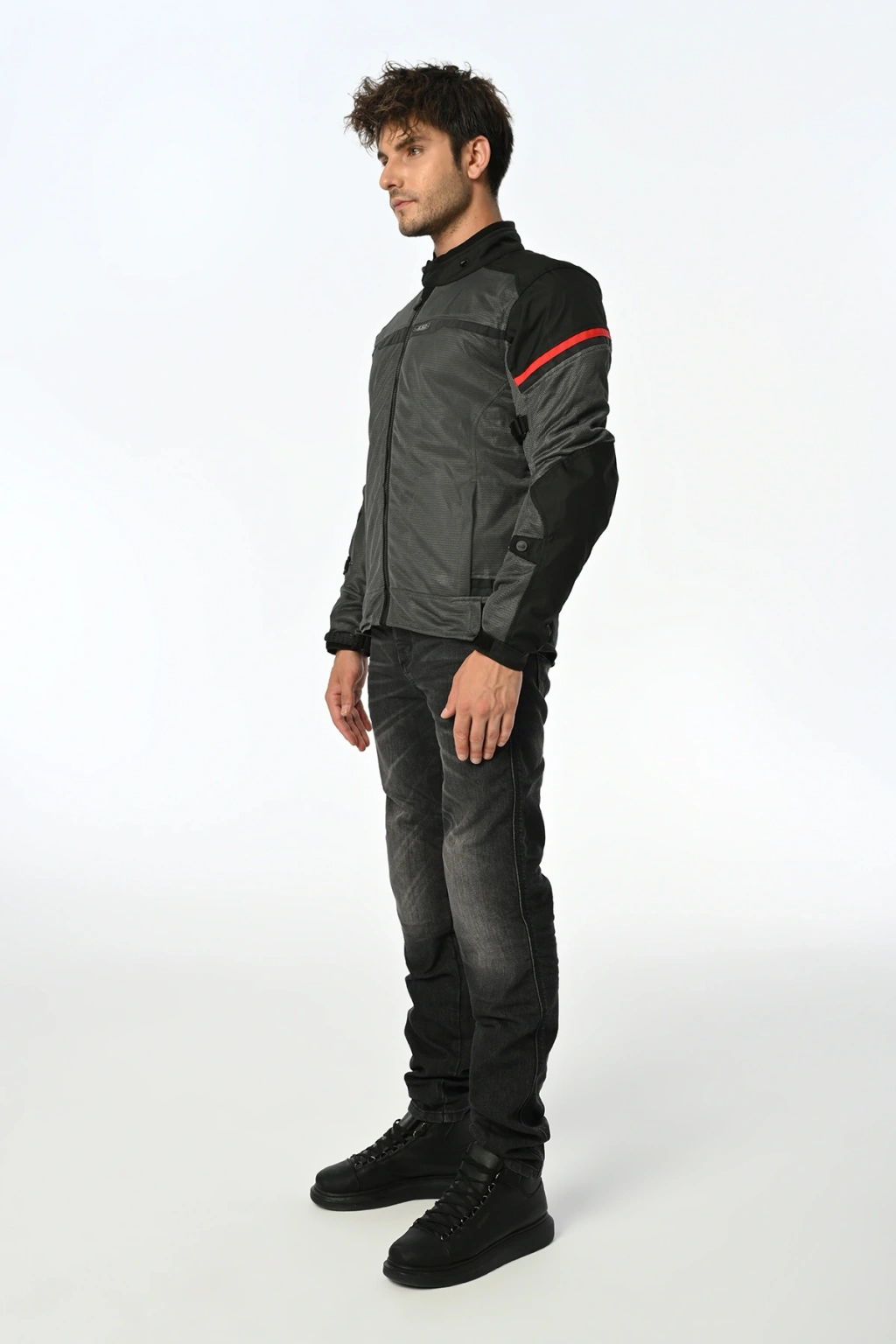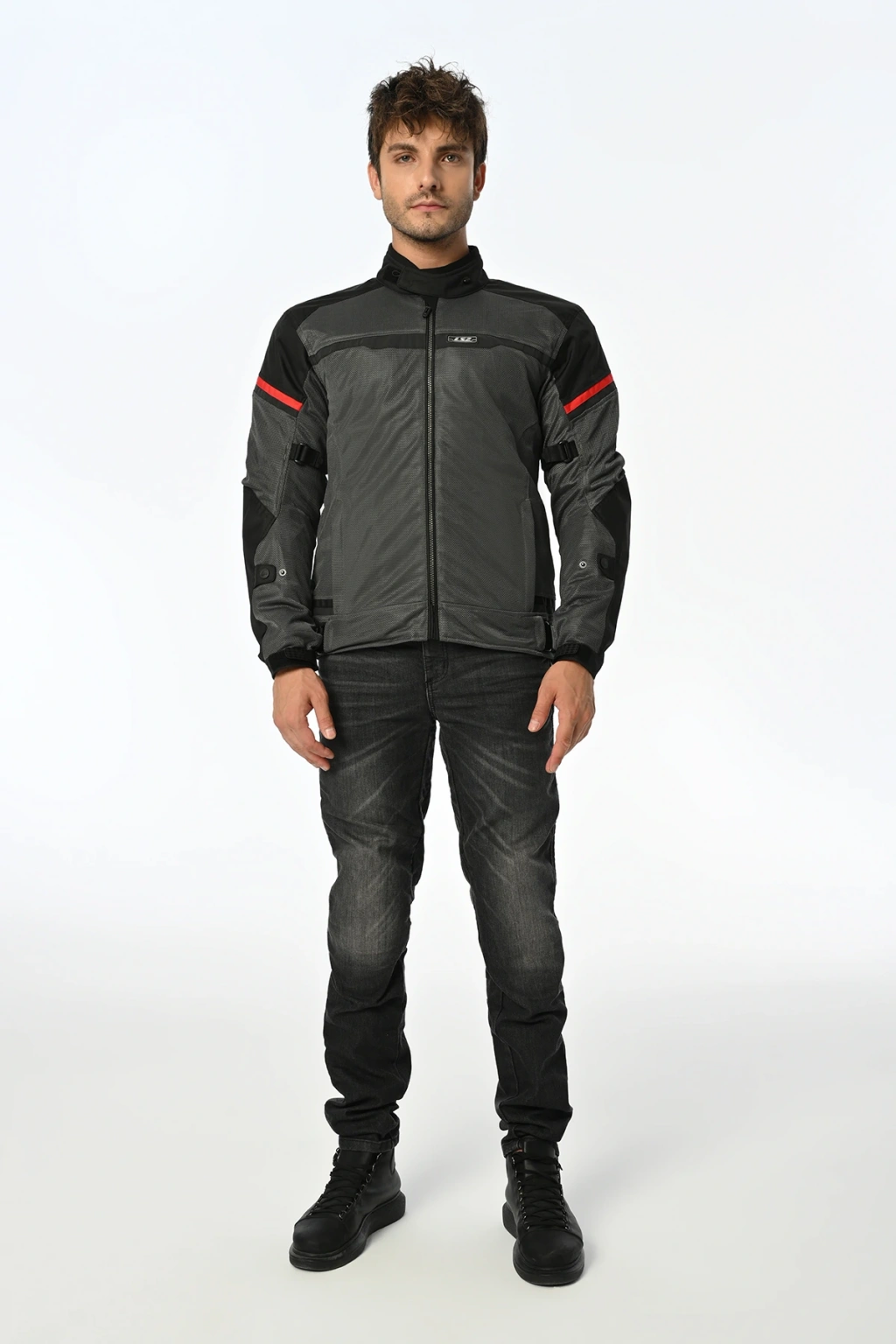 [kumas]MALZEME• A seviye CE sertifikalıdır(EN17092-4:2020)• 600D 92T CE onaylı polyester kumaş• 3 katlı file kumaş (polyester)• 4 mevsim kullanılabilir yapı[koruma]KORUMA• CE onaylı EN1621-1: 2012 Seviye 1 sertifikalı omuz ve dirsek korumaları• Dirsek korumalarda 2 kademeli ayar• Soft Sırt koruması (çıkarılabilir)[ergonomi]ERGONOMİ• Bel bölgesinde kişisel ayar kayışı• Kol ve manşet bölgesinde ayar kayışı• Boyun koruma kısmı• Ayarlanabilir yakada velcro kapatma• Uzun pantolon bağlantı fermuarı• Görünürlüğü arttırıcı reflektif şeritler[isi_dengesi]ISI VE ASTAR• Çıkarılabilir su geçirmez astar• Nefes alabilen yapı[ozellikler]ÖZELLİK• Aşınma ve yırtılma direnci• 2 adet fermuarlı dış cep• 1 adet iç cep• Kulaklık cebi• 1 adet su geçirmez cep telefonu cebi.