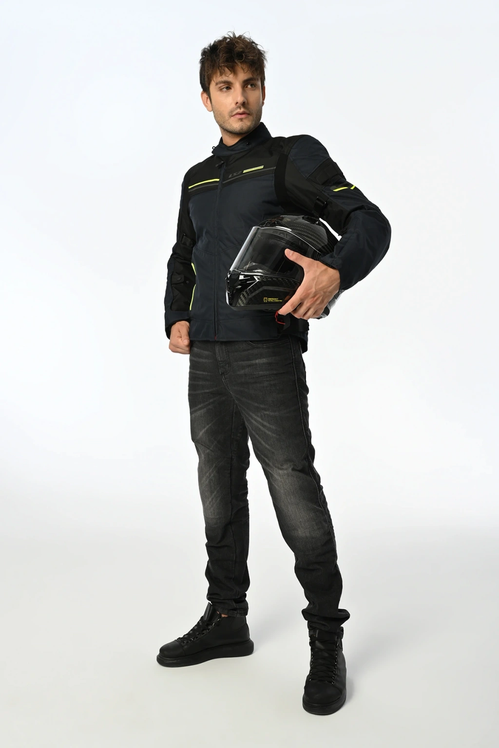 [kumas] MALZEME• AA seviye CE serfikalıdır(EN 17092-3:2020)• 450D Oxford CE Onaylı kumaş (polyester)• Streç kumaş• Hava geçirgenliği 3000g/m2/24h[koruma] KORUMA• CE onaylı EN1621-1: 2012 Seviye 1 sertifikalı omuz ve dirsek korumaları• Dirsek korumalarda 2 kademeli ayar• Soft sırt koruması (çıkarılabilir) [ergonomi] ERGONOMİ• YKK ön fermuar• Arka havalandırma fermuarı• Dirsekte Power Stretch paneller• Velcro yaka kapatma• Vent Smart System & su geçirmez kanat sistem• Kol ve manşet bölgesinde ayar kayışları• Boyun konfor pedi• Pantolon bağlantı çıtı• Görünürlüğü arttırıcı reflektif şeritler[isi_dengesi]ISI VE ASTAR• Çıkarılabilir termal astar• Nefes alabilen yapı[ozellikler]ÖZELLİK• Aşınma ve yırtılma direnci • 2 adet dış cep• 2 adet fermuarlı göğüs cepleri• 1 adet iç cep• 1 Napolyon göğüs cebi• 1 adet su geçirmez cep telefonu cebi