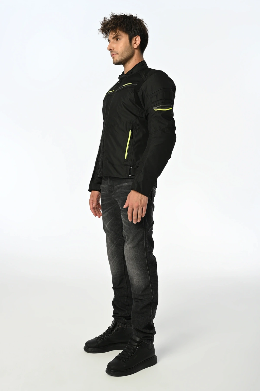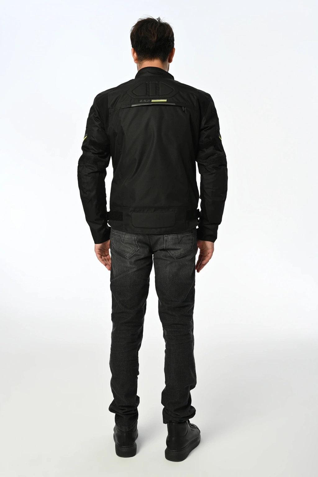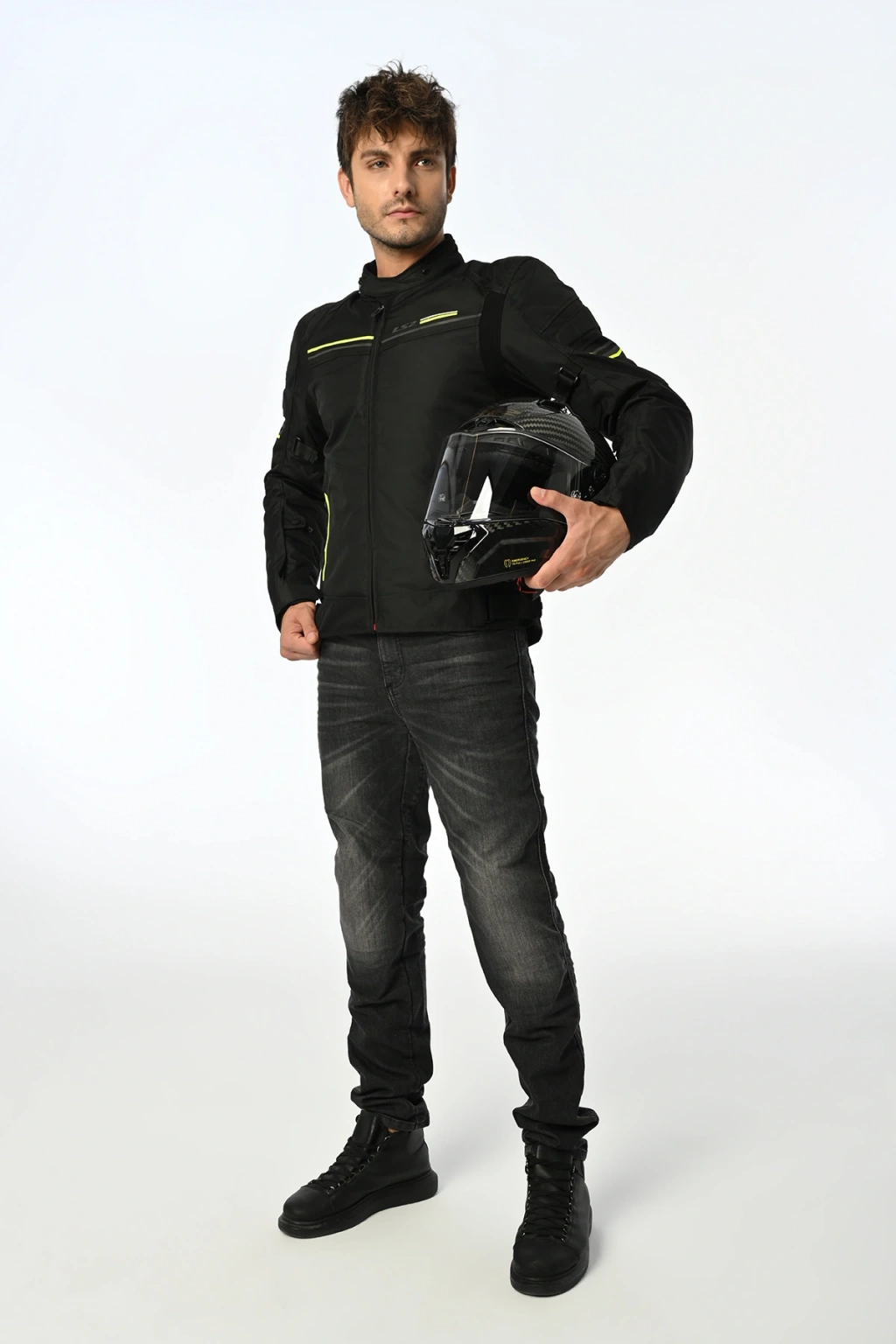 [kumas] MALZEME• AA seviye CE serfikalıdır(EN 17092-3:2020)• 450D Oxford CE Onaylı kumaş (polyester)• Streç kumaş• Hava geçirgenliği 3000g/m2/24h[koruma] KORUMA• CE onaylı EN1621-1: 2012 Seviye 1 sertifikalı omuz ve dirsek korumaları• Dirsek korumalarda 2 kademeli ayar• Soft sırt koruması (çıkarılabilir) [ergonomi] ERGONOMİ• YKK ön fermuar• Arka havalandırma fermuarı• Dirsekte Power Stretch paneller• Velcro yaka kapatma• Vent Smart System & su geçirmez kanat sistem• Kol ve manşet bölgesinde ayar kayışları• Boyun konfor pedi• Pantolon bağlantı çıtı• Görünürlüğü arttırıcı reflektif şeritler[isi_dengesi]ISI VE ASTAR• Çıkarılabilir termal astar• Nefes alabilen yapı[ozellikler]ÖZELLİK• Aşınma ve yırtılma direnci • 2 adet dış cep• 2 adet fermuarlı göğüs cepleri• 1 adet iç cep• 1 Napolyon göğüs cebi• 1 adet su geçirmez cep telefonu cebi