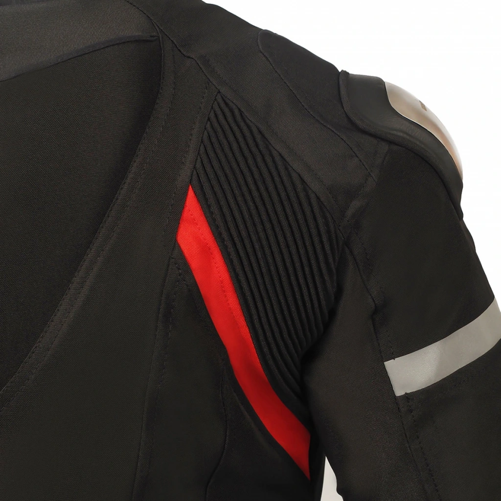 [kumas] MALZEME• Sürtünmeye dayanıklı polyester Duratex 600D kumaş• 4 Mevsim kullanılabilen bir modeldir• Spor motosiklet kullanıcıları için özel tasarım [koruma] KORUMA• CE Sertifikalı omuz korumaları• CE Sertifikalı dirsek korumaları• Omuz bölgeleri metal plaka ile extra güçlendirilmiş [ergonomi] ERGONOMİ• Güçlendirilmiş dikiş yapısı• Yüksek süratlerde aerodinamizm için hörgüç sistemi• Raylı yaka kapatma sistemi• Rahat kullanım için hafif kumaş yapısı• Gece görünürlüğü artırıcı reflektör logolar• Vücut ayar kayışları• Kol kısmında ayarlanabilir fermuar• Kol kısmında ayar kayışları• Kadınlara özel kesimdir[isi_dengesi]ISI VE ASTAR• Nefes alabilen yapı• Fermuarlı çıkarılabilir termal içlik• Su ve rüzgar geçirmeye dayanıklı[ozellikler] ÖZELLİK• 2 adet dış cep
