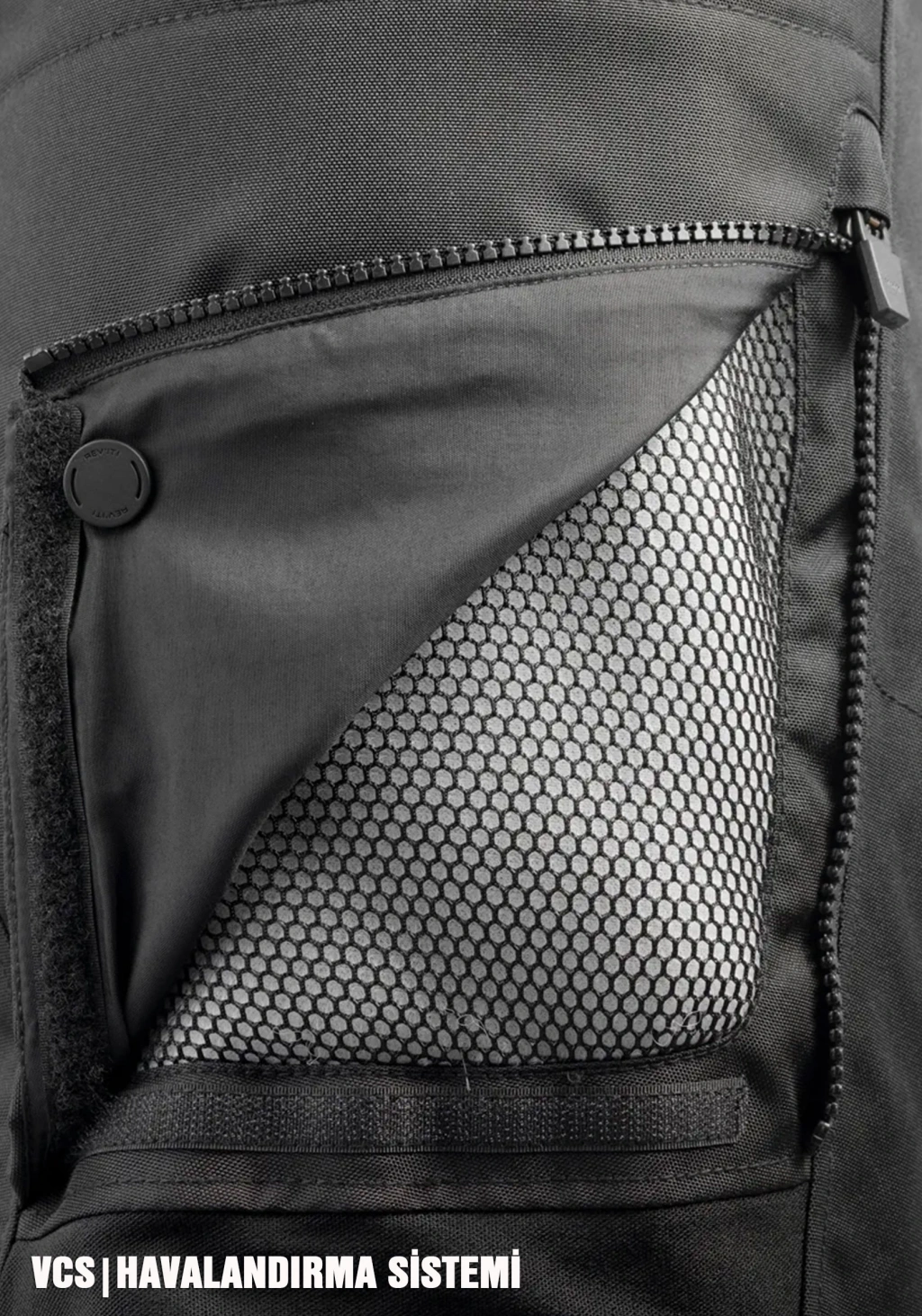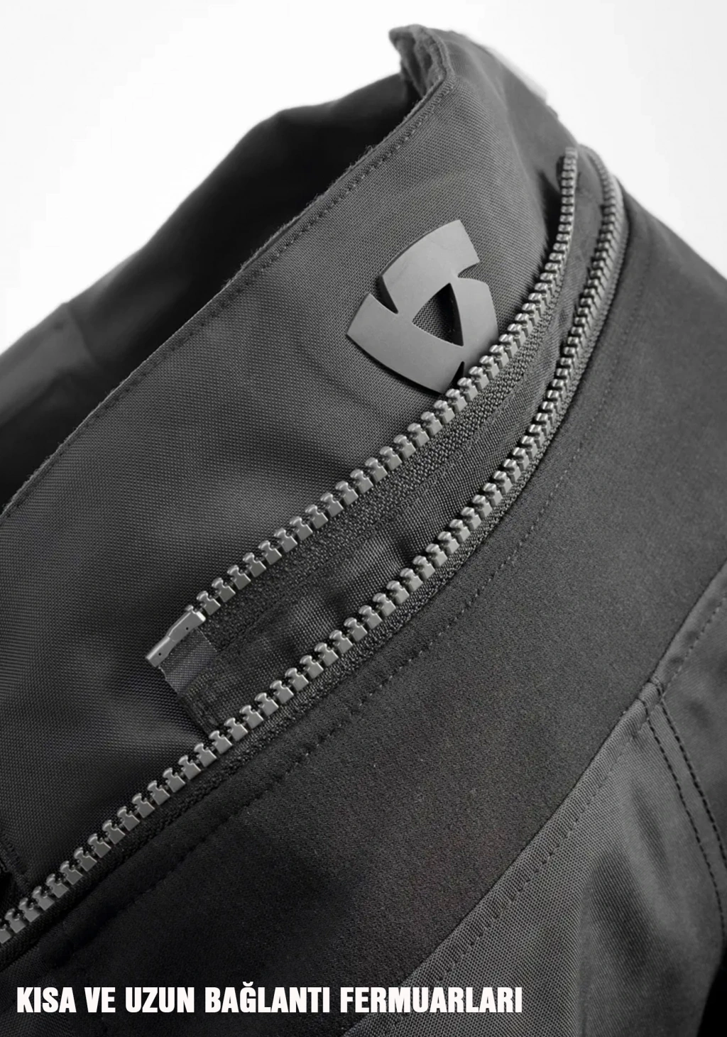 [kumas]MALZEME• AA seviye CE serfikalıdır(EN 17092-3:2020)• 3D air mesh, polyester ripstop kumaş• Profesyonel motosiklet kullanıcıları için• Uzun yol touring ve Off-Road enduro motosiklet kullanıcıları için özel tasarım [koruma] KORUMA• SEEFLEX™ CE Seviyesi 2 omuz korumaları• SEEFLEX™ CE Seviyesi 2 dirsek koruyucuları• Ayarlanabilir dirsek koruması, optimum konfor sağlayacak şekilde üç farklı yüksekliğe ayarlamaya olanak sağlar• REVIT göğüs koruyucu takılabilmesi için cep• SEESOFT™ CE-seviye 2 sırt koruması takılabilmesi hazır koruma cebi [ergonomi] ERGONOMİ• Raylı ve düğmeli boyun kapatma sistemi• Yakada ekstra rahatlık için yumuşak kumaş• Kolay açılabilir ön fermuar ve iptal edilebilir ön fermuar rüzgar koruyucu• Bel, kol ve bilek bölgelerinde ayarlanabilir kayışlar• Belde değişken yükseklik ayarlı kayışlar• Yüksek yansıtıcı özelliğine sahip reflektörler• Pantolon sabitlemesi için uzun fermuar sistemi• Kısa bağlantı fermuarı• REVIT Connector yelek bağlantısı• REVIT Segur boyun koruma bağlantısı [isi_dengesi] ISI VE ASTAR• Çıkarılabilir termal içlik• Ayrı giyilebilir hydratex®|Lite liner astar• Geliştirilmiş özel havalandırma giriş ve çıkış kanalları [ozellikler] ÖZELLİK• 2 adet ön cep• Arka kısımda su geçirmez saklama cebi• Termal astar içinde cep• Su geçirmez astar içinde iç cep