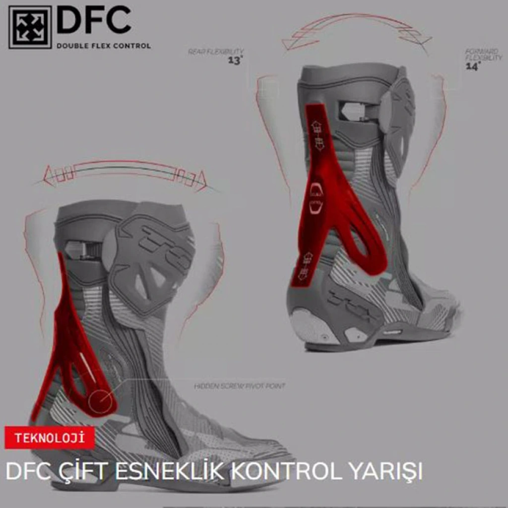 [kumas]MALZEME• Spor motosiklet kullanıcıları için özel italyan tasarım• Dayanıklı, hafif ve deri dış yüzey• Daha iyi kavrama hissiyatı için nubuk yapı[bot_koruma]KORUMALAR• CE EN13634 burun, topuk, bilek ve kaval kemiği koruması• 4 hareketli bilek koruma mekanizması[havalandirma]ÖZELLİKLER• Derin viraj dönüşleri için burun ve topuk kısmında destek sliderı• Kaydırmaz yapıda özel alt taban• Gizli tokalı ve fermuarlı bilek kapama• İç kısımda yüksek güvenlikli bağcıklı kapama• Anatomik tasarlanmış yumuşak iç taban• Havaalabilen iç astar• Aşınma engelleyici vites koruyucu entegresi