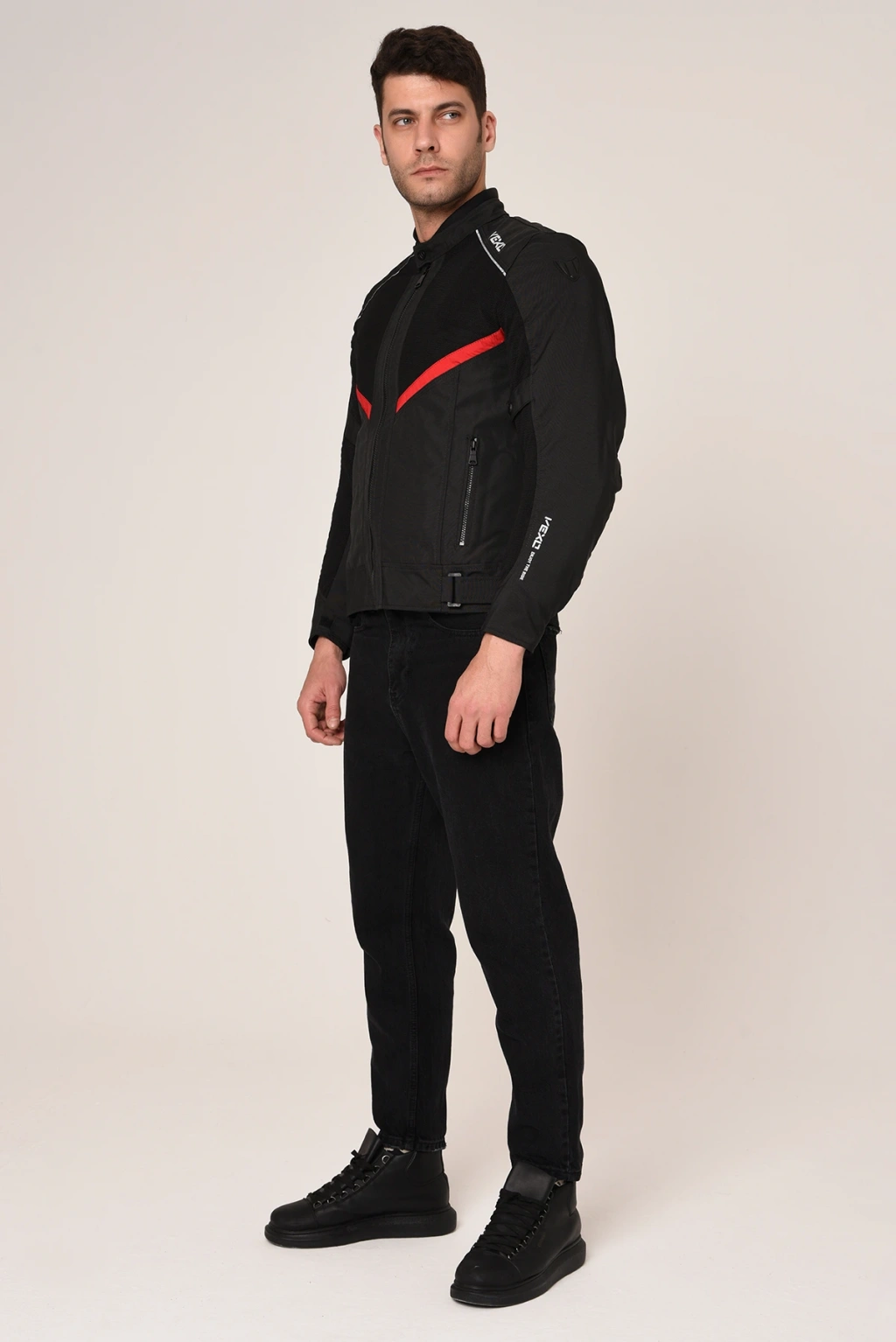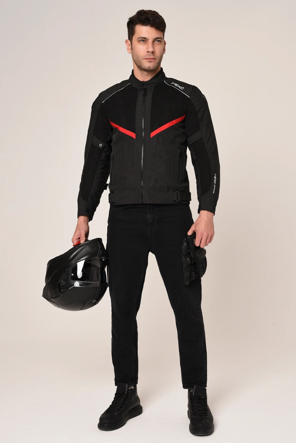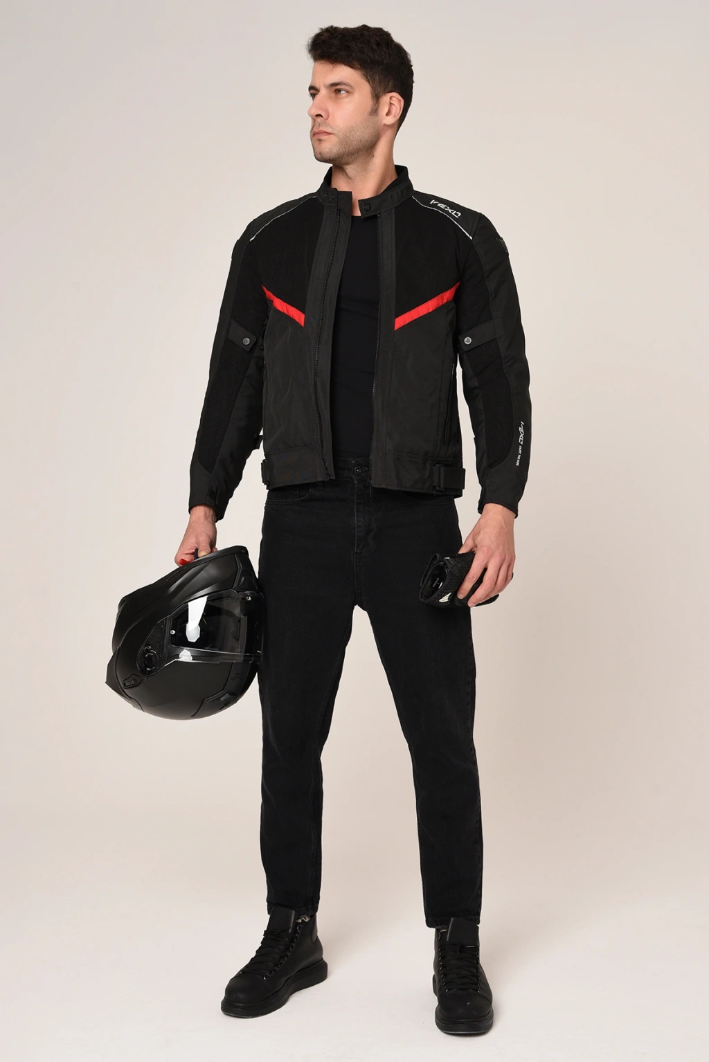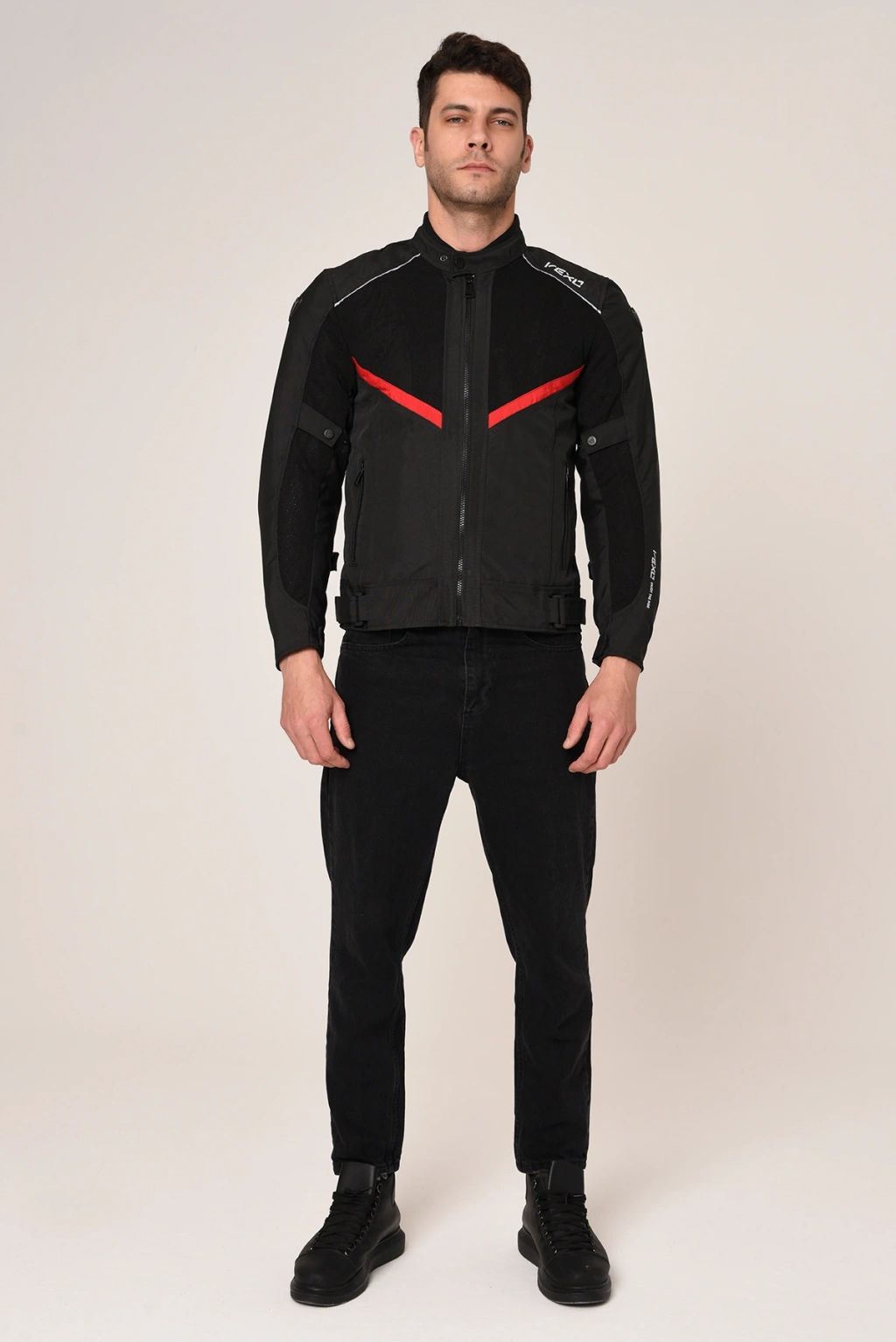 [kumas] MALZEME• Yüksek kaliteli Cordura 300D kumaş• Su geçirmez yapı• Üzerindeki file örgü sayesinde hava alabilen yapı• Dört mevsim kullanım[koruma] KORUMA• %100 İtalyan CE onaylı EN1621-1 2012 Sertifikalı omuz ve dirsek korumaları (çıkarılabilir)• Soft Sırt Koruması (çıkarılabilir) [ergonomi] ERGONOMİ• Rüzgar dirençli YKK fermuar sistemi• Bel bölgesinde kişisel ayar çırtları• 2 kademeli boyun ayar çıtları• Kol ayar cırtları• Bel ayar cırtları[isi_dengesi]ISI VE ASTAR• Nefes alabilen file kumaş• Kolayca çıkarılabilir su geçirmez iç astar• Kolayca çıkarılabilir termal astar[ozellikler] ÖZELLİK• Kemer bağlantı çıtı• Aşınma ve yırtılma direnci • Termal içlik üzerinde 1 cep• 1 adet iç cep • 2 adet dış cep• Görünürlüğü arttırıcı reflektif ekler