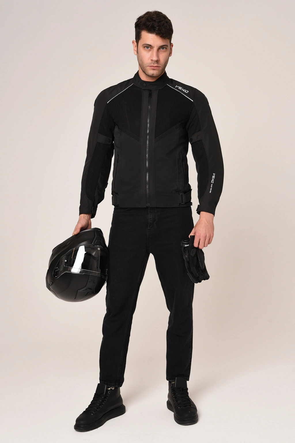 [kumas] MALZEME• Yüksek kaliteli Cordura 300D kumaş• Su geçirmez yapı• Üzerindeki file örgü sayesinde hava alabilen yapı• Dört mevsim kullanım[koruma] KORUMA• %100 İtalyan CE onaylı EN1621-1 2012 Sertifikalı omuz ve dirsek korumaları (çıkarılabilir)• Soft Sırt Koruması (çıkarılabilir) [ergonomi] ERGONOMİ• Rüzgar dirençli YKK fermuar sistemi• Bel bölgesinde kişisel ayar çırtları• 2 kademeli boyun ayar çıtları• Kol ayar cırtları• Bel ayar cırtları[isi_dengesi]ISI VE ASTAR• Nefes alabilen file kumaş• Kolayca çıkarılabilir su geçirmez iç astar• Kolayca çıkarılabilir termal astar[ozellikler] ÖZELLİK• Kemer bağlantı çıtı• Aşınma ve yırtılma direnci • Termal içlik üzerinde 1 cep• 1 adet iç cep • 2 adet dış cep• Görünürlüğü arttırıcı reflektif ekler